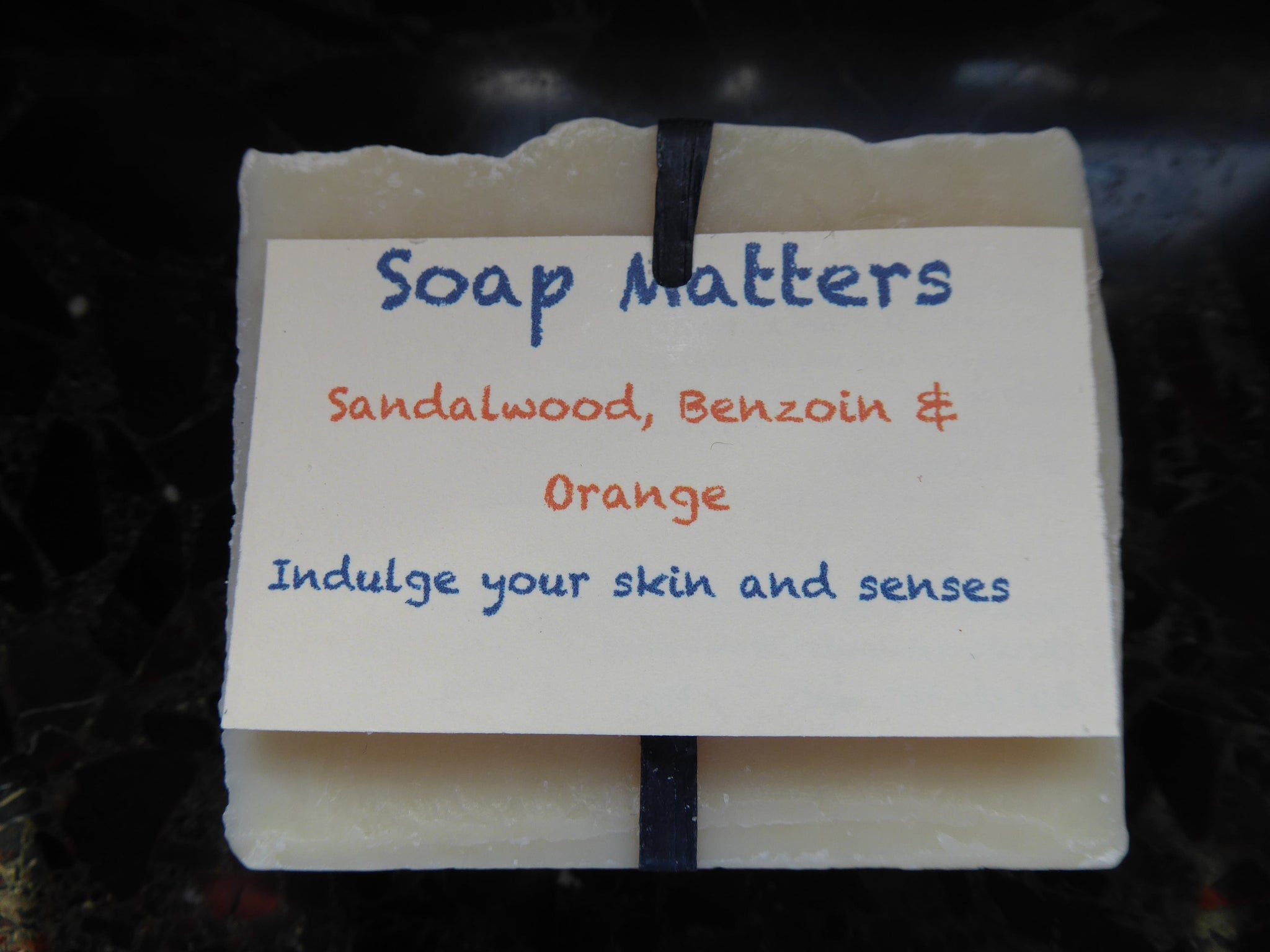 Soap Matters Natural Soap Labelled Sandalwood, Benzoin and Orange soap (the Sensitive bar)